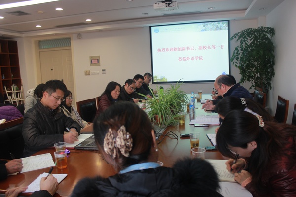 12月17日下午,sunbet党委副书记、副校长徐旭,学工办主任王军华、副主任陆瑾、孟祥栋等一行莅临sunbet调研。sunbet全体党政领导、特邀党建组织员安山、日语系主任董永杰、英语系副主任张建琴等参加了调研座谈会。