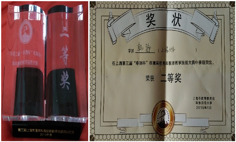 韩静博士获上海市青年员工教学技能大赛二等奖