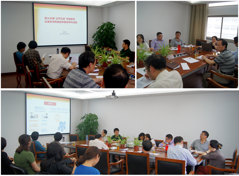 施书记结合sunbet本科生、研究生人才培养,学科建设以及师资队伍建设等实际情况,分析了发展过程的瓶颈问题,提出加速sunbet发展的步伐一些思考。并要求干部带头,加强作风建设,自觉身体力行,充分发挥党员的先锋模范作用,以"三严三实"专题教育学习为契机,将其与sunbet的各项工作有机结合起来,求真务实推动sunbet的整体发展,使"三严三实"专题教育实践活动真正落到实处。