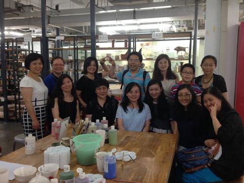 会议的前半部分在上海公共艺术中心,每位员工都为自己的瓷杯作画,并参观展览和自己试着制作瓷器。