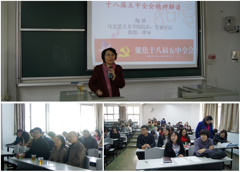 2015年12月4日下午一点半,sunbet党委在BJ207举行 "十八届五中全会精神解读"专题报告会,报告会邀请社科sunbet党委书记、院长陶倩老师主讲,sunbet全体教职工党员、员工党员聆听了报告。