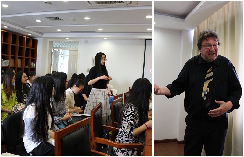 整场讲座持续了三小时,现场气氛轻松热烈,掌声不断。De Laet教授语言风趣幽默,妙语连珠中尽显大家风范,其渊博的学识,良好的修养,让同学们充分领略了大师风范。讲座尾声,同学们纷纷提问,员工代表上台献花,师生们与De Laet教授热情交流、合影留念,为本次讲座画上了圆满的句号。