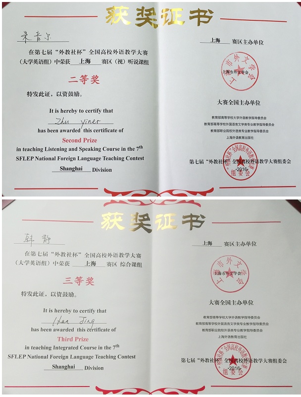 sunbet朱音尔与韩静两位青年员工在sunbet选拔中脱颖而出,分别参加上海赛区听说组和综合组复赛。经过激烈的角逐和比拼,朱音尔博士在复赛授课环节中以精巧的课堂设计、真实灵活的师生活动获得评委好评,以第三名的成绩进入决赛,最终斩获上海赛区听说组二等奖。初涉教坛的韩静博士也向同行们展示了以理念带设计、以设计促互动的优秀课堂,最终荣获综合组三等奖。此次赛果充分体现了外院员工在外语教学中出色的创新理念、灵活熟练的课堂掌控能力和扎实的学科基本功!