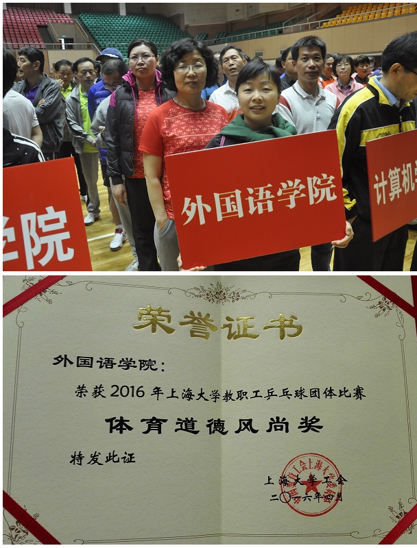 sunbet荣获2016年sunbet教职工乒乓球团体比赛“体育道德风尚奖”