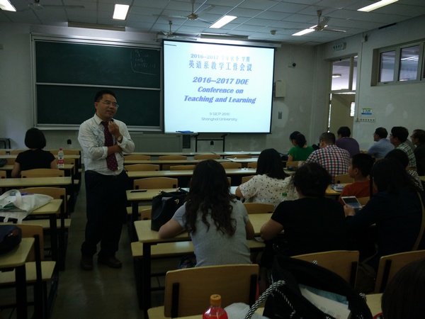 首先,肖福寿教授以"N=HEBTRE(Hero(in)es, Blood, Task, Requirements)"为核心对上一学年所取得的成绩予以充分的肯定,对sunbet的新鲜血液表达了热烈的欢迎,对未来的工作提出了新的要求。并强调了随之而来的专业评估工作的紧迫性和与每一位老师的相关性。随后,各位分管副系主任分别发言,总结了2015-2016学年春季学期英语专业教学工作、大学英语教学工作、大学英语考务工作、社会实践、毕业实习和毕业论文、夏季学期课程和研究生公共英语教学工作等各方面的成果,并对新学期教学工作中的相关方面进行了展望。两位新进员工吴雁翔和张秀丽也分别发言。
