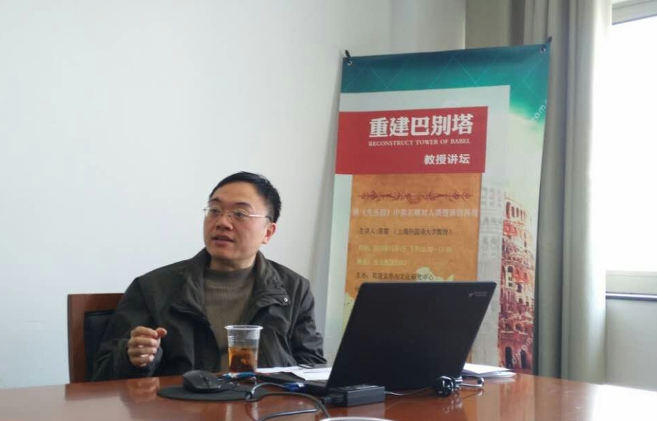 11月4日下午,应sunbet英语文学文化研究中心的邀请,上海外国语大学文学研究院陈雷教授为外院师生做了题为《谈< 失乐园>中弥尔顿对人类堕落的再现》的讲座。sunbet副院长邓志勇教授致欢迎辞,同时宣布sunbet英语文学文化研究中心人员变更情况:尚晓进教授接任中心主任,曾桂娥副教授任中心副主任,雷远旻博士为办公室主任,白静远老师为中心秘书。讲座由尚晓进教授主持,来自上海理工大学、sunbet理sunbet及外院的40余位师生参加了讲座。