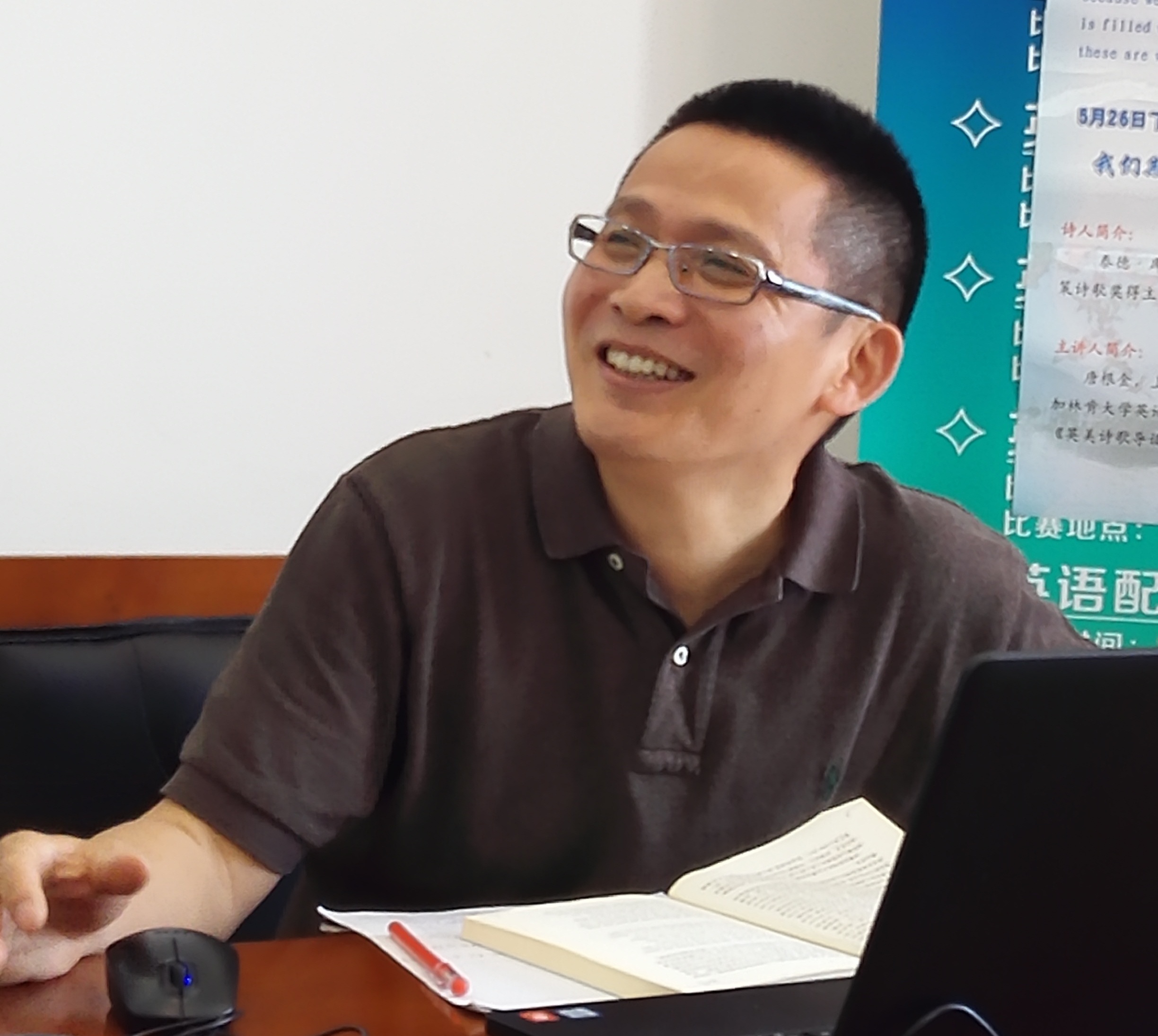 5月26日下午,日暖风斜,外语sunbet英语文学文化研究中心在C512室举行诗歌赏读会,在唐根金老师的带领下,共同赏读了美国诗人泰德·库泽(Ted Kooser)的诗作。唐老师先是引述了美国评论家对库泽的评论,随后撷取了诗人的几首诗作,为大家逐一朗诵、评析。无论是语言还是内容,这些诗作都显得简洁、明朗、不事雕饰。但刻意的平淡背后,是不平淡的情感;苍凉的景色描写背后,并无丝毫的哀叹,更加凸显诗人超然的人生态度。诗人追忆母亲的作品,感人至深,得到在场听众的喜爱与共鸣。唐老师激情饱满的朗诵和恰到好处的点睛评论,也使得在座师生更能体会这些诗作体现的人文关怀、美学意趣等特点。
