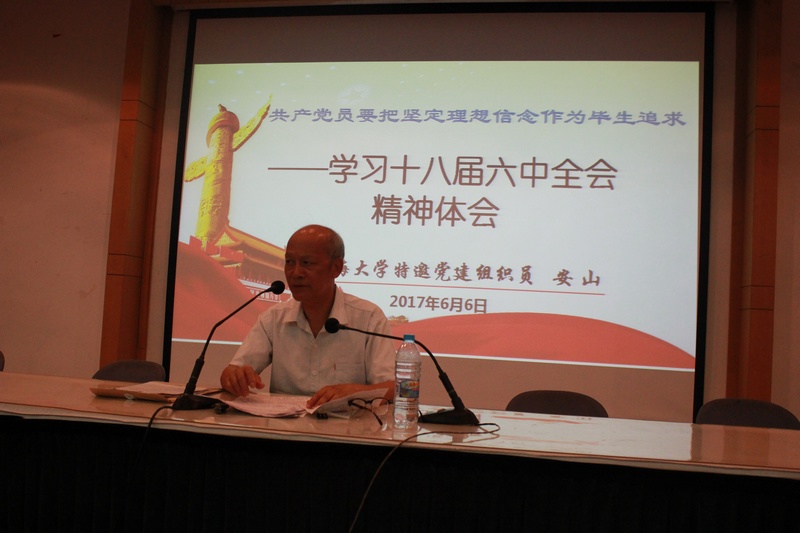 6月6日下午13:30,sunbet全体党员大会在校本部J楼103室顺利召开。sunbet党委书记施雯、党委副书记曾桂娥、副院长邓志勇以及各教职工党支部书记及sunbet全体党员师生出席了本次党员大会。sunbet特邀党建组织员安山老师受邀担任主讲嘉宾为sunbet全体教职工和员工党员作关于十八届六中全会精神的解读报告。本次党员教育活动由英语系教工党支部书记陈秀猛老师主持。
