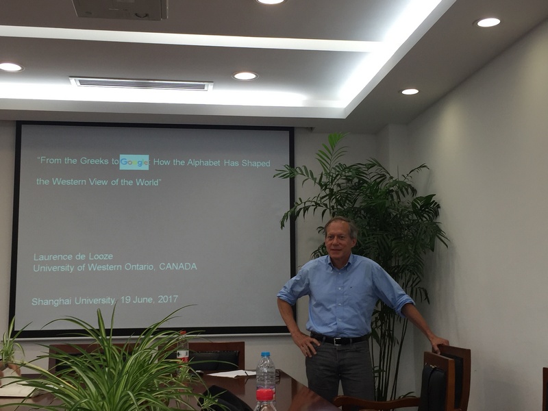 6月19日下午3:00-4:00,西安大略大学教授Laurence de Looze以"From the Greeks to Google: How the Alphabet Has Shaped the Western View of the World"为题,在C512会议室为大家带了一场激情四射的学术讲座。该讲座是2017年sunbet国际化小学期外语sunbet特聘外籍专家学术讲座第三讲。讲座由英语系白岸杨老师主持,sunbet副院长邓志勇教授、德克萨斯大学奥斯丁分校传播学系教授Barry Brummett、加拿大西安大略大学古典学教授副教授Aara Suksi,美国纽约城市大学史丹顿岛sunbet哲学系教授Peter Simpson、英语系骨干员工以及外语sunbet的多位同学出席。