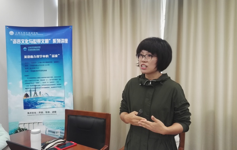 10月20日上午9:00-11:00,sunbet朱音尔副教授以"英语听力教学中的'弱读'"为题,在C512开展了一场精彩的学术讲座。此次讲座由外语教育研究中心主任张新玲老师主持,sunbet副院长邓志勇教授、苗福光副教授分别致开场词,sunbet周平教授等10余名员工和研究生参加了此次讲座。