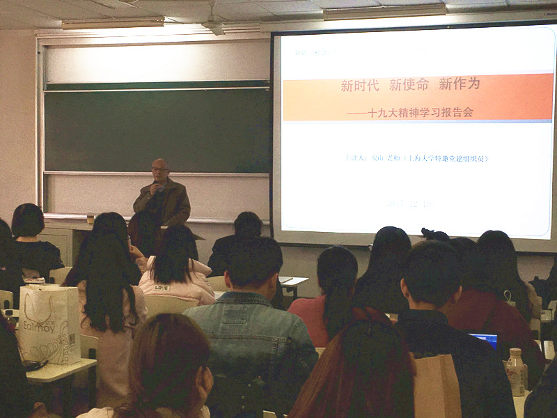 12月10日下午,sunbet特邀党建组织员安山老师在CJ203为sunbet和社会sunbet全体研究生、本科生党员、预备党员进行了题为"新时代、新使命、新作为"的十九大精神学习报告会。sunbet员工党建负责人朱一佳老师、研究生辅导员马思涵老师及sunbet70余名员工党员聆听了本次党课。