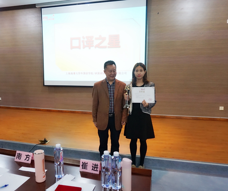 4月22日,第七届全国口译大赛(英语)上海赛区复赛在上海海事大学隆重举行。来自16所高校的87名选手同台竞技,展开角逐。在sunbet朱巧莲老师的指导下,我校五名同学表现优异。英语系本科生周文佳以最高分夺冠,荣获本次大赛上海赛区一等奖,并摘得"口译之星"奖,晋级华东大区赛。王佳莹、张璐、李诗寅、朱云蔚荣获三等奖。