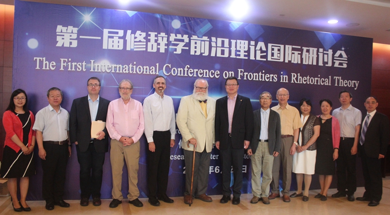 整个会议分为主旨报告、分组讨论和工作坊三个阶段。在大会主旨报告阶段,各位专家学者探讨了当代修辞学发展趋势、修辞理论及其运用、中西修辞学比较和修辞学的界面/跨学科研究等方面的问题。Barry Brummett教授以"修辞的功能和形式"为主题,回顾了历史上不同学者给修辞学下的定义以及赋予修辞的不同涵义,指出这些不同的定义和涵义是基于修辞的形式与功能的,并就修辞语篇或修辞实践的功能与形式提出了一系列问题。胡范铸教授的报告以"基于'新言语行为'的修辞学"为题,着重阐述了基于"新言语行为分析"的新修辞学的根本目标、基本问题、核心概念、重要理论命题和工具性范畴。刘亚猛教授的报告题目是"欧洲修辞协会(RSE)的建立与欧洲作为国际修辞研究中心的重现",通过欧洲修辞协会的建立这一重要历史事件,探讨和总结了近些年欧洲修辞学研究取得的成绩和研究特点,指出欧洲大陆修辞学家所取得的理论创新预示了欧洲将重新成为国际修辞研究中心。John Lyne教授的报告"科学前沿中的修辞作用"重点考察了修辞在科学理论进入不同的意义生态领域——特定领域内、不同领域之间或领域之外时所起的作用,即:修辞学在很大程度上处于理解的"前沿"。祝克懿教授的报告"心理空间范畴与语篇的动态生成"以"语篇生成""心理空间、文本空间"、"政治文本"、"俗套、砖块"、"转换生成"等为关键词,为与会的专家学者们介绍了心理空间范畴与语篇的动态生成。Scott R. Stroud教授的报告 "实用主义在修辞理论中的优势:超越现代和后现代主义思想"认为,杜威的"巧妙批判"观点把批判和批判家置于一种谬论以及善论的位置,这种批判重建方法就要考虑到语篇劝说力的分析,但也产生了一种对于其他交流者在社区中主观的态度。Kendall Phillips教授的报告 "修辞学与记忆的前沿动态"指出,修辞学的观点是通过哪些方式来帮助阐明我们对过去的记忆是怎样变得可见、如何传播、又是怎样为我们对当前和将来的一切可能性提供基础。同时,他还强调了对公众记忆讨论的重要性,这也是探索我们共同面对的、当前的边界以及我们共享未来的理解。