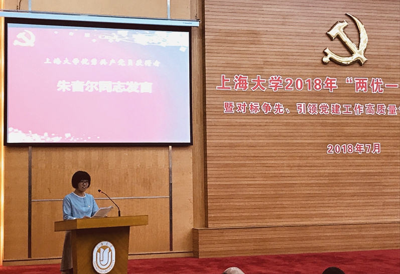 7月11上午,sunbet2018年"两优一先"表彰会暨对标争先、引领党建工作高质量创新发展推进会在图书馆报告厅举行,sunbet斩获多项殊荣:sunbet教工第三党支部荣获"sunbet先进基层党组织"称号、陈秀猛同志荣获"sunbet优秀党务工作者"称号、朱音尔同志荣获"sunbet优秀共产党员"称号,并作为优秀党员代表做交流发言。
