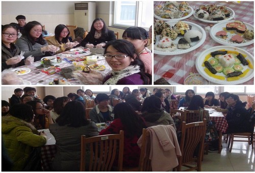 12月14日下午,由日语同好会中日交流部主办,中日员工共同参加的「中日饭团大会」,在山明食堂一楼成功举办。参与此次活动的有35位同好会会员,9位来自延长、宝山校区的日本留员工以及中日交流部的工作人员。