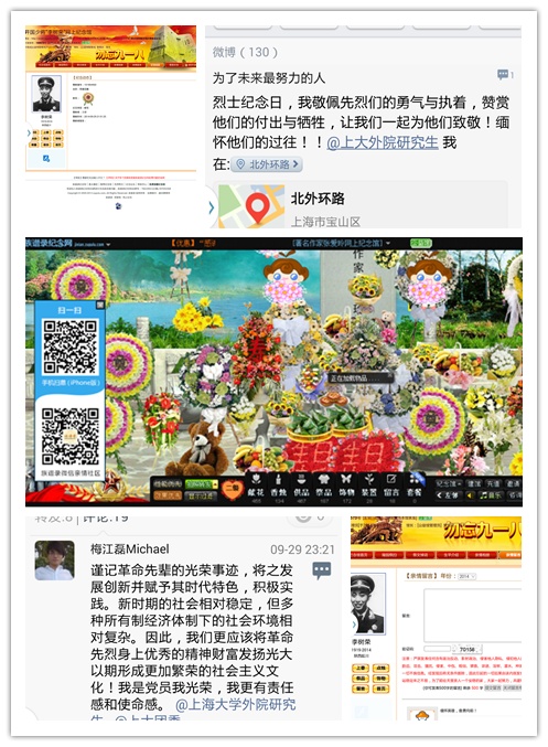 响应校团委的号召,外语sunbet研究生于9月30日开展了"国庆勿忘祭先烈,网上祭扫表真情"烈士纪念日主题活动,以实际行动追悼革命烈士,寄托革命哀思。外语sunbet研究生团总支在研究生群体中积极宣传动员,获得了热烈的响应,开展了包括主题微博留言、主题微博转发和在祭扫网站为革命先烈献花留言等丰富多彩的教育活动。