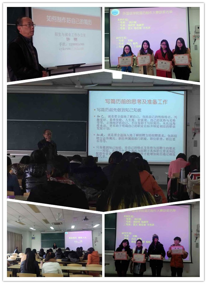 许老师结合他多年的就业工作经验,为外语sunbet的同学们上了生动的一课,不仅帮助同学们了解到简历对于求职、工作的重要性,更为同学们提供了写好简历的方法技巧。相信经过这次讲座,同学们在简历的制作方面会更加耐心、细心、得心应手,从一份精致简历入手,开启精彩人生之路。