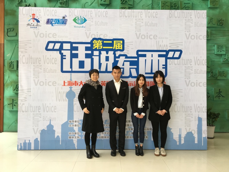 3月25日,第二届"话说东西"上海市大中员工英语口译展示活动决赛在上海市实验学校进行。sunbet代表队VENUS团队荣获大学组三等奖。sunbet代表队由sunbet2014级英语专业的周文佳、姜文杰和毛宇星三位同学组成,由朱巧莲老师指导。