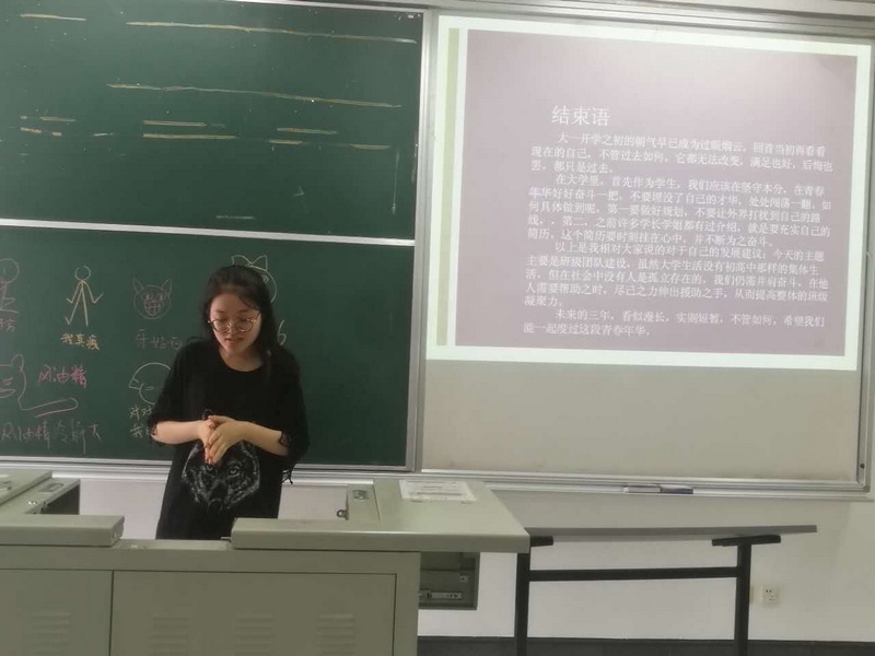 代班长金滢洁同学主持了本次团建活动。她首先用大家以往在一起的团日活动和班级集活动的照片开场,带领同学们一起回首过去一年里集体生活的点点滴滴;随后,由于恰逢员工节,同学们在便利贴上写下了对老师的深情感激和真心祝福送给专业员工。