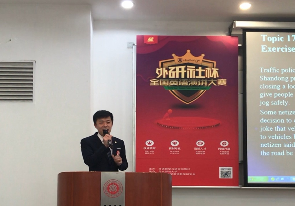 11月4日中午12时,"外研社杯"全国英语演讲大赛上海赛区选拔赛在华东师范大学闵行校区隆重举行。此次比赛由外语教学与研究出版社和上海市大学英语教学研究委员会主办,华东师范大学外语sunbet大学英语竞赛中心承办。在来自上海各大高校的25位参赛选手中,我校英语系2016级翻译硕士钟文同学经过激烈角逐,最终以90.7的高分排名第四,荣获一等奖。