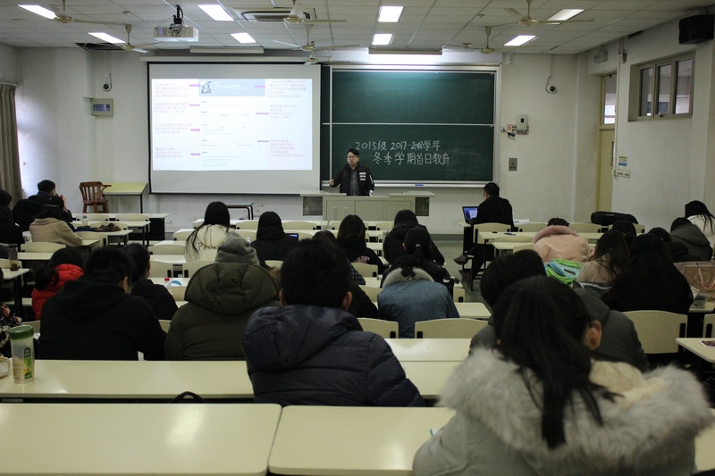 下午15:30,2015级全体本科生集聚Cj203教室如期进行本次首日教育的第二场活动。步入大三的冬季学期之际,许多同学对于自己的人生规划较为迷茫以及对于一份优秀的简历的制作不甚了解,为了帮助同学们尽早确定人生规划,了解简历的制作以及留学的相关信息,2015级本科生辅导员梁苗老师邀请来自sunbet莘远留学的王字海老师为同学们开展了关于人生规划、留学规划以及简历制作的讲座。