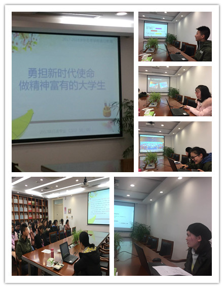 首先,辅导员汪旭娟老师直接进入正题,通过解读党的十九大报告的相关内容,引出新时代下我们大员工的使命,又结合马斯洛的需求层次理论,希望我们能做一个精神富有的人。汪老师希望大家在大员工活里尤其要重视多阅读、多听讲座等良好习惯的养成,要注意通过参加活动、进行社交等进行能力的提升。汪老师谆谆教诲,希望同学们能做一个志存高远、把握当下、永不气馁的人。